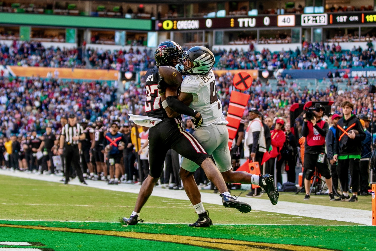 If there was a defining element of the Orange Bowl, it was Oregon’s defense. The Ducks executed a near-flawless game plan, neutralizing Texas Tech’s strengths and exposing its vulnerabilities. The Red Raiders, accustomed to finding space through motion and misdirection, found lanes closed and reads complicated.